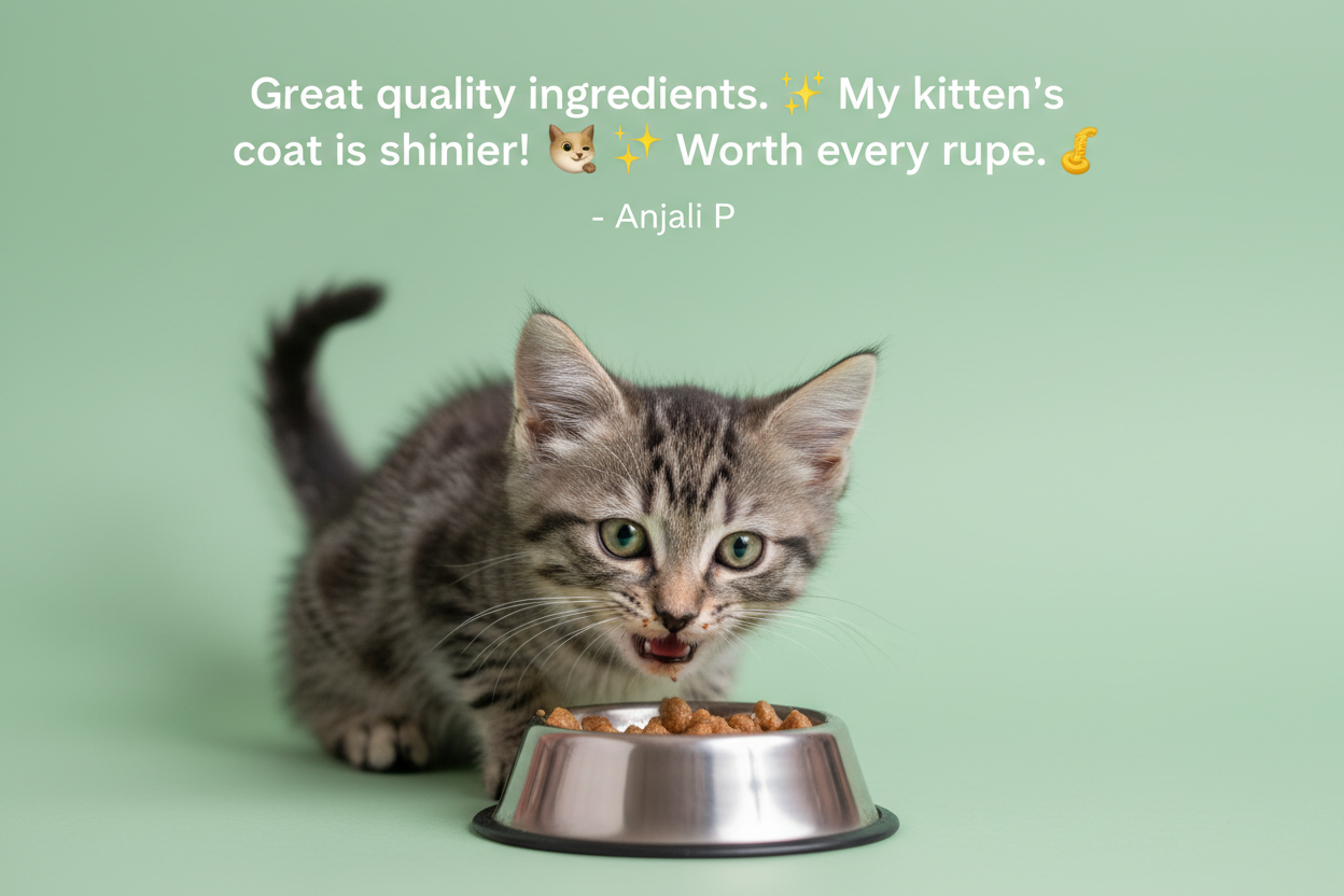 • Great quality ingredients. / My kitten's coat is shinier! πŸ±πŸ’« / Worth every rupee.